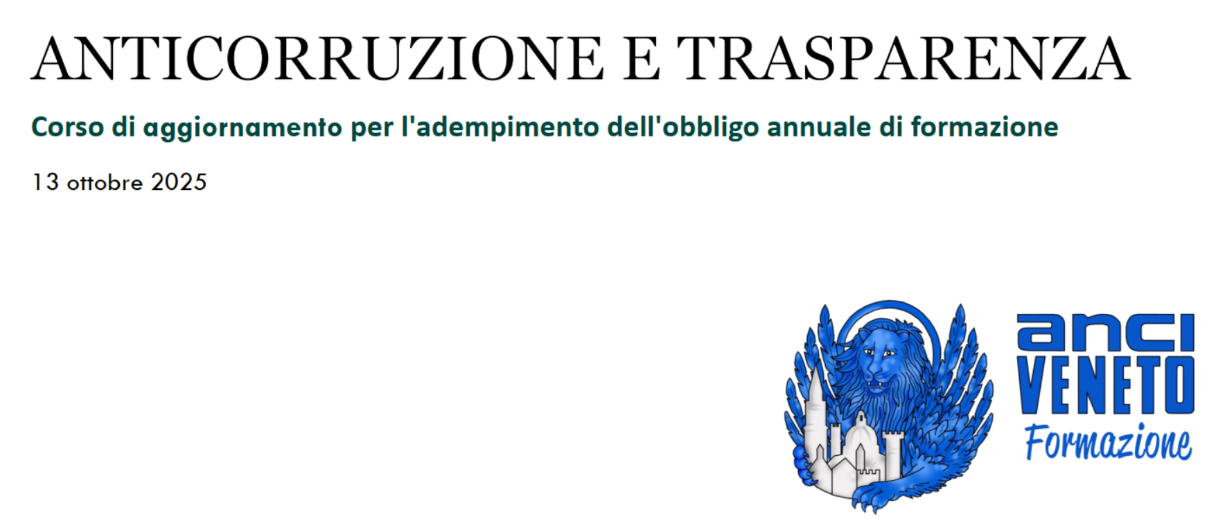 Percorso formativo obbligatorio previsto dall’art. 1, commi 5, 8, 9 e 11, della Legge 190/2012 e dall’art. 15, comma 5, del D.P.R. 62/2013, finalizzato all’aggiornamento del personale degli enti locali in materia di prevenzione della corruzione e trasparenza amministrativa.